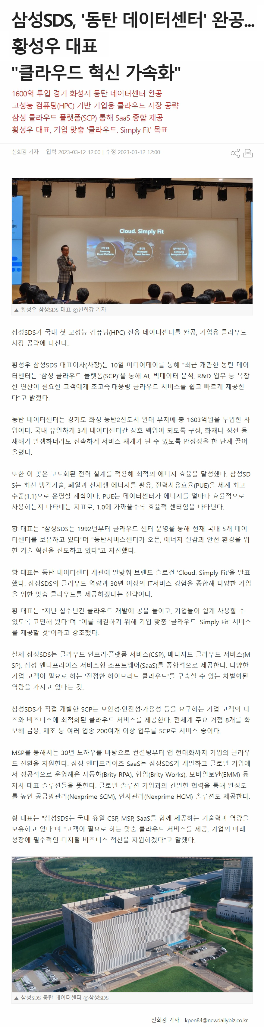 Á¦¸ñ »ï¼ºSDS, 'µ¿Åº µ¥ÀÌÅͼ¾ÅÍ' ¿Ï°ø... Ȳ¼º¿ì ´ëÇ¥ "Ŭ¶ó¿ìµå Çõ½Å °¡¼ÓÈ­"
